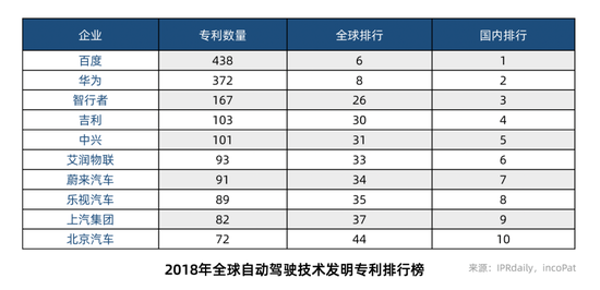 再看交通行业,人工智能正在交通行业典型使用场景为主动驾驶,主动驾驶具备愈加平安、节能、高效、操作简略、年夜幅升高人力老本五年夜劣势;是汽车工业倒退首要趋向。2019年,常识产权媒体IPRdaily联结incoPat翻新指数钻研中心公布“2018年寰球主动驾驶技巧创造专利排行榜(TOP 100)”,陈诉显示正在2018年时期,主动驾驶专利排行入榜前100名企业中,中国有36家;排名靠前的10家企业辨别为:baidu、华为、智行者、吉利、中兴、艾润物联、蔚来、乐视、上汽以及北汽。此中baidu以及华为专利数目遥遥抢先,也是惟一两家进入寰球TOP10。