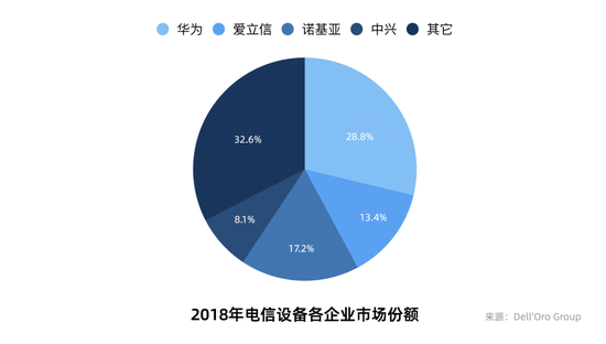华为是5G畛域当之有愧的霸主。寰球网络通信设施厂商通过多年合并整合,今朝呈四强争霸格式,辨别为华为、爱立信、诺基亚以及中兴。依据Dell'Oro Group 统计,2018年华为、诺基亚、爱立信、中兴市场份额辨别为28.8%、17.2%、13.4%、8.1%,算计市场份额达到67.5%。