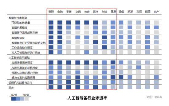 中国迷信院公布的《2019年人工智能倒退白皮书》剖析了人工智能技巧正在没有偕行业的浸透率,发现从技巧的行业应用率角度,安防以及金融最高,批发、交通、教育、医疗、制作、衰弱行业次之。人工智能之以是正在上述8个行业浸透较快,很年夜局部缘由正在于,人工智能提供的处理计划可无效处理行业痛点,赋能工业转型晋级。
