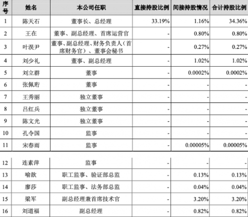 寒武纪公司董事、监事、初级治理职员及外围技巧职员正在IPO前间接及直接算计持有公司股分状况