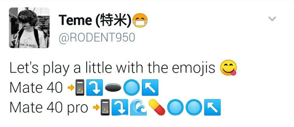 海外知名爆料人士@Teme 爆料了该系列手机的外观设计细节,尽管都是一些抽象的符号,但还是能看出一些端倪的。华为Mate40将采用打孔屏设计并且是单打孔,而Pro版本将搭载瀑布屏,并且有可能前置双摄。假设该消息属实,那么华为Mate40系列的外观将会较上代会有十分明显的变化。
