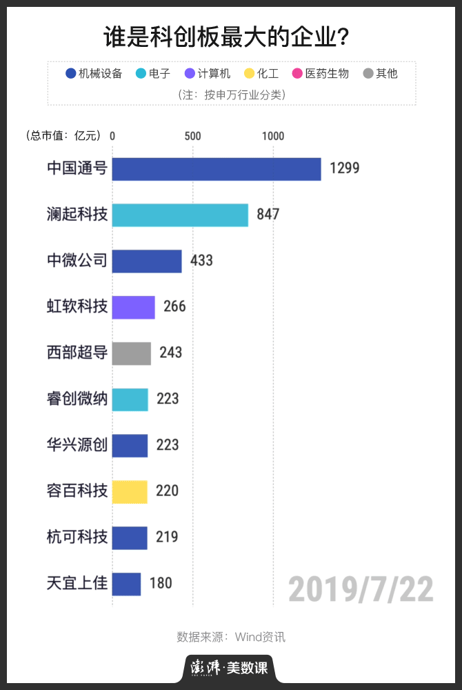 依据Wind资讯,截至7月21日,133家企业前后登岸科创板市场,很多较量争论机、医药生物以及机器设施等行业的龙头企业动员整个板块总市值从0生长至2.79万亿。中国通号、澜起科技、中微公司、金山办公、中芯国内前后成为科创板市值最年夜的公司,领跑市场。