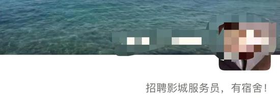 影院老板曹斌,专门把本人的的冤家圈署名改为了:影城招工,提供住宿。