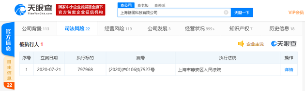 7月23日上午音讯,天眼查数据显示,7月21日, 美团打车联系关系公司上海路团科技无限公司被上海市静安区群众法院列为被执行人,执行标的为797968元。