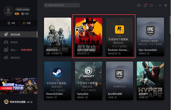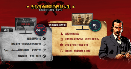 奇游加速器有专线网络定制优化游戏的线路,是荒野大镖客2专用加速器,匹配最好的网络,一键顺利登陆游戏: