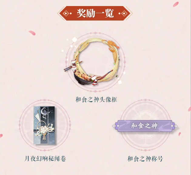 值患上一提的是,操持奖章还能够换取限定“以及食之神”头像框、“以及食之神”名称,与“月夜幻响”底蕴卷等处分。此中,头像框以甘旨的拉面为轮廓,另有葱花与天妇罗年夜虾装点此中。左下角是精美适口的豚骨浇头拉面,两个小纸人拿着筷子,正要饱餐一顿……这款头像能够说是吃货必备,来蜃气楼做一名“熟行”的美食家吧!