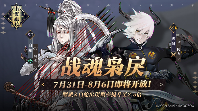 7月31日00:00-8月6日23:59,全新限时祈灵敏动行将开启,本期将退场的是[SSR镜灵-睚眦]与[SR镜灵-白蛇]。同期还将开放[SSR镜灵-睚眦]的镜灵寄缘,即正在当期的限时祈灵中累计祈灵80次便可进行一次无耗费祈灵间接取得[睚眦]。限时祈灵与镜灵寄缘都将继续至8月6日。
