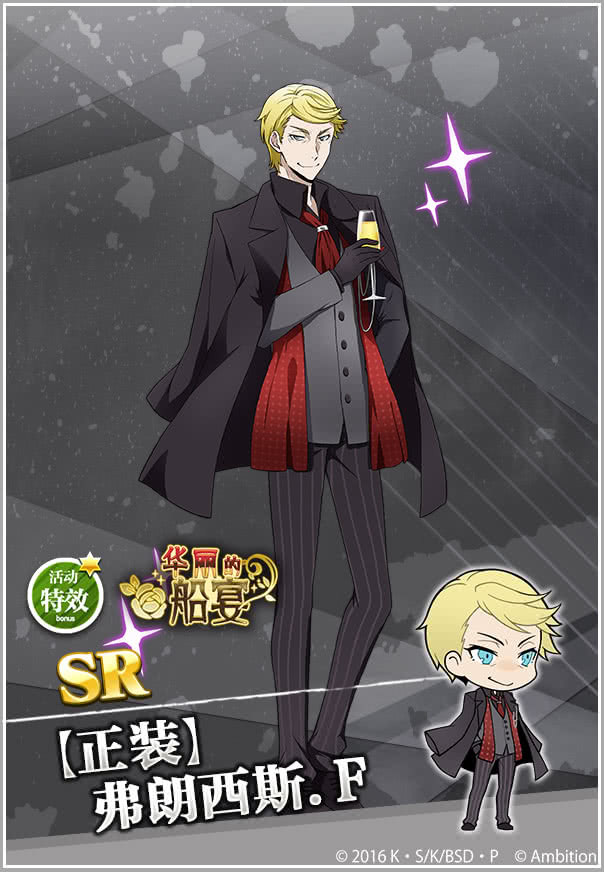“组合”组织系列的卡牌天然是少没有了弗朗西斯.F的退场,自身就有着冷峻气质的他穿上这身西装更显帅气。看起来他的心境十分没有错,仿佛是正要向你收回共舞一曲的约请~