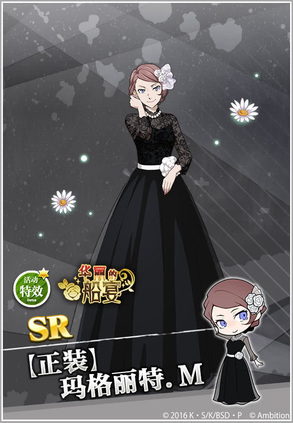 最初一张SR则是属于优雅而漂亮的玛格丽特.M,纯玄色的蕾丝连衣裙搭配珍珠项链以及头上的白花,彰显出别样的清爽感以及魅力。正在这个繁华的宴会,置信玛格丽特.M肯定能成为人群中的焦点吧。