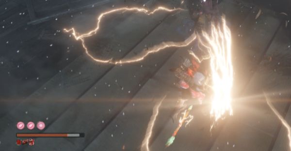 在只狼里,有一个机制叫“雷电奉还”(雷反),是作为游戏中玩家唯一一个雷属性攻击手段。