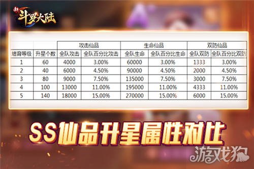 S仙品培育所消耗的是新材料天地精华,而培育获得的属性都是全队属性,同时当培育达到+5时仙品就会升阶为SS仙品。