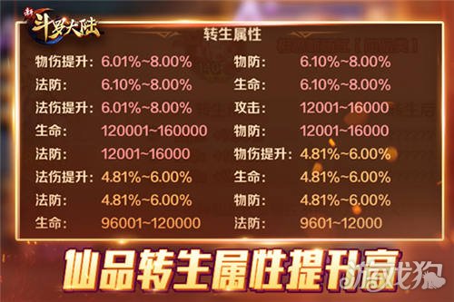 《新斗罗大陆》手游中,SS仙品转生属性多出了红色,但转生属性的具体类型没有发生改变,有所变化的是属性上限从6%提升到了8%。