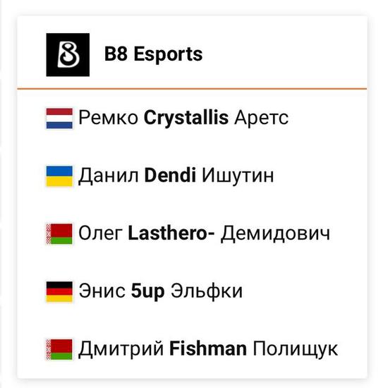 变阵首先发生在我们的老朋友Dendi的队伍B8。在坐了多月冷板凳后,Ghostik和KingR终于正式离开了B8。目前的B8阵容是在6月7日组建的,在组建完毕的第二天就终结了B8连续两个月的连败。