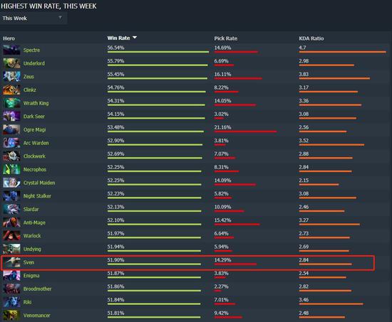 在这一系列诱因之下,不少玩家将斯温称为版本之子。而实际上,斯温的胜率并未过于夸张,该英雄以51.90%的胜率位居胜率榜单第十七位。