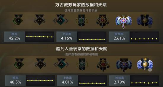 而神奇的是,殁境神蚀者甚至还在7.27b版本中得到了一定的增强,但却因不适应版本节奏,而胜率低下。不过显然这个英雄对于操作者的要求比较高,在超凡入圣分段中,殁境神蚀者的胜率有着显著提升:相比于传奇分段时的46.5%与万古流芳分段的45.2%,殁境神蚀者在超凡入圣分段的胜率达到了48.5%。