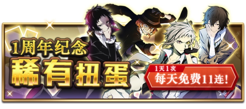 压轴年夜戏,《文豪迷犬怪奇谭》周年庆最重磅福利收费发放!第一弹福利蕴含海量游戏资本:收费异能石x1000、必患上SSR扭蛋券x二、一般扭蛋券x十、时期限定扭蛋券x十、第一流强化资本x五、第一流进化资本x五、整体力规复瓶x10收费猎取,让你一次抽个够!第二弹福利中更有逐日一次收费11连罕见扭蛋,泛滥SSR轻松支出囊中,另有异才能战役AP耗费减半、磨玻璃珠3倍收益流动。使人目迷五色的福利收费馈赠,只为与你共聚《文豪迷犬怪奇谭》国服周年庆!