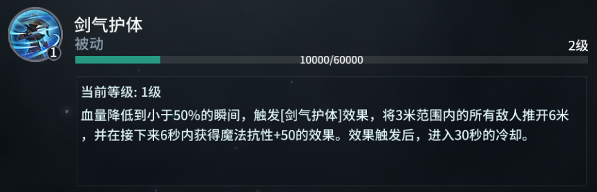 被动技艺【剑气护体】:九月血量降至低于50%的霎时将会推开范畴内的一切敌人,并正在一段工夫内取得魔抗,实现冷却后可再次触发。