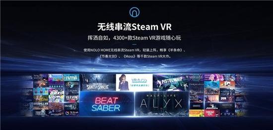 NOLO X1还支持通过NOLO HOME开启无线串流功能,最具优势的便是体验SteamVR游戏大作,这也是目前VR用户留存率最高的VR平台,数千款VR游戏内容,各种类型,无论是FPS、动作、冒险、模拟、角色扮演、休闲和其他,应有尽有,每天玩一款,你也需要数年功夫。