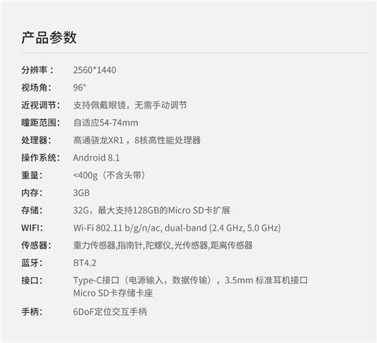 头显按键和接口设计上也十分简单,上方左右两边分别负责音量调节和电源、退出功能,下方接口非常齐全,有Type-C接口负责电源输入和数据传输,3.5mm标准耳机接口和最具刚需功能的Micro SD卡槽,存储卡一插,VR电影不用愁。