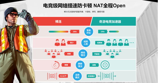 奇游加速器是Steam、Epic、Uplay、Origin等平台的专用联机加速器,旗下“区服智选”、“内网互通”等黑科技功能能够帮助大家享受最优质的网络服务,同时对《GTA5》OL模式锁区、进不去、容易卡顿掉线等游戏等问题有专业的解决方案,用最好的线路做联机加速支持,能保障大家顺利登录游戏: