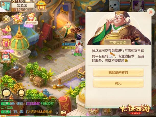 8月5日起,大话手游跨系统角色转移功能已在全服正式开启,这一功能将能顺利解决此前玩家反映的,更换手机系统导致原有角色无法在新系统中使用的问题。玩家只需要在游戏中前往“宝象国”找到NPC苹安买买提,和他对话就可以进行跨系统角色的转移。