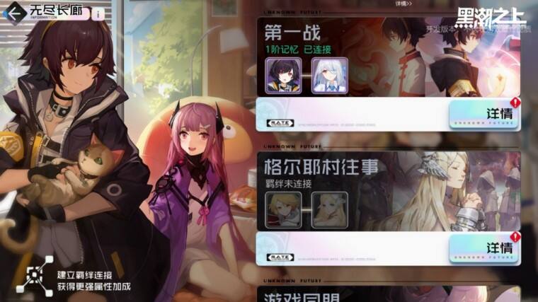 在8月20日即将到来的「突破」测试中,羁绊系统即将实装,届时接触者们将会通过这个全新玩法,去解锁更多角色故事,了解更多不为人知的情报。与此同时,全新7位战斗少女也蓄势待发,将与此前登场的12位战斗少女们并肩作战,共同迎接更为严峻的挑战。黑潮再临,共19名战斗少女即将集结,谱写崭新篇章!
