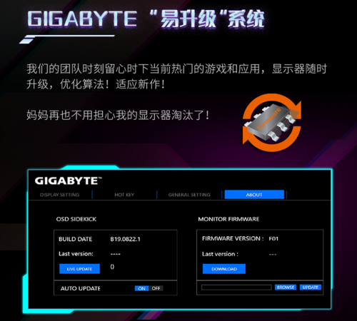 非常值得一提是,技嘉G27Q的所有的软件调节与功能都可以在WINDOWS系统直接操作,通过键盘快捷键即可快速操作,方便有效。此外软件支持OSD升级,这意味着这款显示器和手机一样支持系统更新,在未来可以添加更多新功能或者优化显示算法,避免功能落后被淘汰,更适合长期使用放心使用。