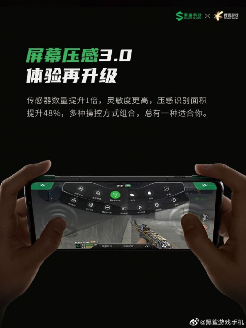 黑鲨科技作为国际游戏手机市场的开辟者,这次正在黑鲨3S上初次引入了主机平台非常盛行的体感操控,这也是继语音操控之后的又一次业界翻新。同时语音操控进一步晋升语音辨认精确率,还年夜幅升高了辨认提早。将并发的语音辞汇个数添加2倍,并支持玩家自界说语音辞汇。备受玩家喜欢的双区屏幕压感性能也失去了连续,经过正在游戏场景中设置两个压感操控事情,双指依托没有同压力完成四指操作。例如正在《战争精英》中腾讯黑鲨游戏手机3S能够经过双区屏幕压感性能完成映照游戏中的开枪、开镜按键,协助玩家愈加顺畅的对准射击,轻松夺冠。