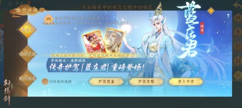 《轩辕剑龙舞云山》全新护驾“蓝庄君”将于唤灵卡池限时登场,少侠何不与他携手并进,平天下纷乱,守盛唐江湖?