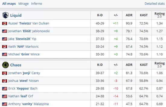 在北美赛区的焦点战中,刚刚进行人员调整的Liquid便以完胜姿态击败Chaos小组全胜出线。双方两张地图上半场进行的均有来有回,Twistzz经过休赛期的调整似乎找到一些巅峰时期的精准感觉,EliGE与总监的稳定发挥让Chaos落后之际的追分显得有心无力,再加上作为指挥的Stewie2K表现出色,在图二以22杀排名第一,没有任何机会的Chaos只得以11-16以及8-16不敌Liquid位居小组第二。