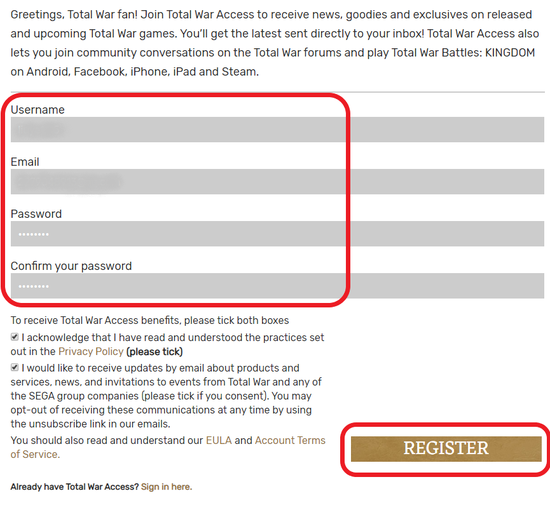 进入Total war Access注册主页 https://access.totalwar.com/auth/email_register/