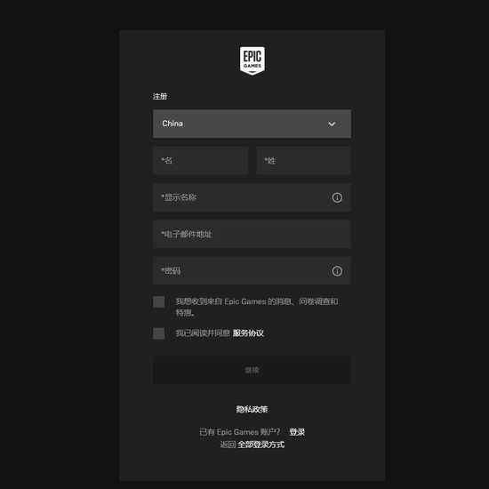 4、填写邮箱并设置名、姓、名称和登录密码等信息,将两个方框勾选,注意QQ邮箱有收不到邮件的情况,最好选择其他邮箱注册