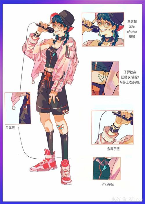 _茯iron用渔夫帽、炫色卫衣、黑色短裤和粉色潮鞋为元素,设计了一套打歌达人的皮肤,潮人感爆棚。