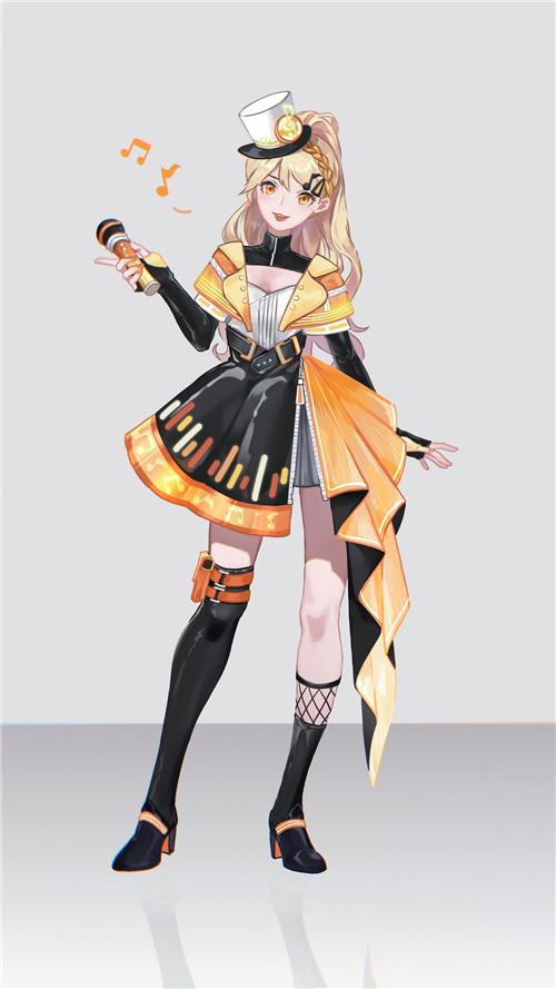 噗叽噗叽叽_着眼于电音的音符感,绘制了这套充满律动感的皮肤——手中的麦克风、发间的音符发夹、百褶裙上的琴键均透露出设计师的匠心。