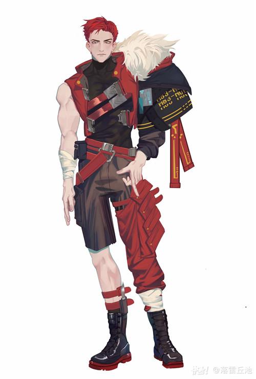 在为数众多的女性皮肤中,落雷丘池以“赤潮—红色幽灵”为灵感,设计了一套名为“赤潮流羽”的男士皮肤。搭配上男主矫健的外形,显示出独特的风情。