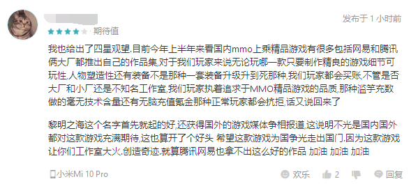 除了了国际媒体以及玩家的存眷,IGN等多家无名海内游戏媒体也纷繁报导,个人为《拂晓之海》点赞,乃至有海内玩家也留言对这款游戏示意的激烈的等待,心愿能及早看到游戏正式上线。