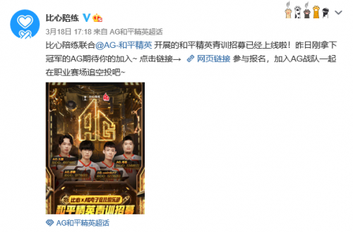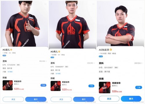 AG电子竞技俱乐部成立于2009年,参加赛事笼罩王者光彩、战争精英、穿梭前线等多个支流电子竞技名目。2020年4月,AG王者光彩分部AG超玩会、战争精英分部都与比心陪练告竣协作。正在没有久之后的2020PEL职业联赛S1中,超等黑马AG演出“白色奇观”、一举摘下桂冠。随后,AG迅速裁减冠军阵容,归入三位新选手独特征战PEL S2,这三名新人也于近日正在比心陪练守旧了账号。
