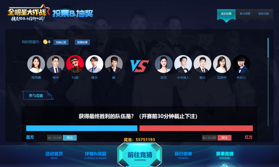 赛前竞猜环节用丰富的奖品福利去吸引玩家的注意力,使之对接下来的赛事直播更加期待,从而保证了观看捷虎X全明星大作战的人数。而此前通过“捷虎小游戏”所获得的票数又能在竞猜中作为筹码,三个环节紧紧相扣,吸引《英魂之刃》内九成以上的真实玩家参与。