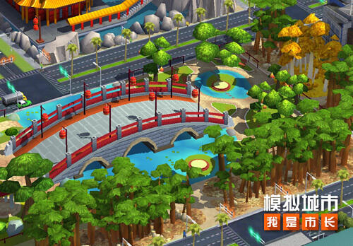 在七夕的传说中,每年牛郎织女相会都靠喜鹊搭桥来成全,而在游戏中,玩家们则可以搭建美丽的月影鹊桥,供市民们感受节日的浪漫氛围。月影鹊桥采用了传统的石拱桥设计,而桥面上的栏杆和灯笼则漆成了大红色,给人喜气洋洋的观感。