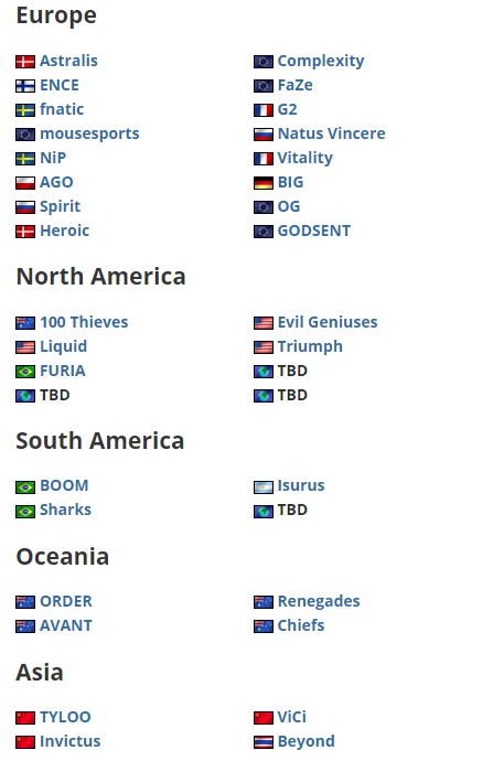 下面是参加EPL S12的完整名单: