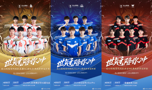 DYG并非比心陪练平台签约的唯一一支KPL战队,2019年秋季赛冠军、被称作“银河战舰”的AG超玩会,2019年世界冠军杯冠军eStarPro,以及荣耀新军、以七连胜战绩拿到2020世界冠军杯名额的西安WE战队,都已被比心陪练收入囊中。