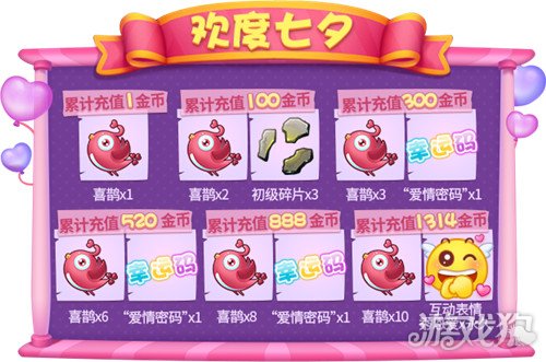 活动期间,每消费1金币获得即可获得1恩爱值!玩家拥有的恩爱值越高,位于“甜蜜排行榜”的名次越高!活动结束后,根据您的排名,抱走奖励吧!