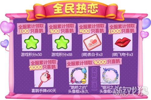 1. 在活动期间至少领取过1只“喜鹊”的玩家,才可领取“全民热恋”奖励;