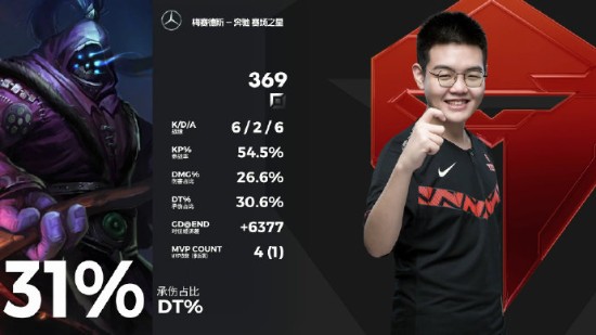 MVP:伤害占比百分之31的JACKEYLOVE(寒冰射手)