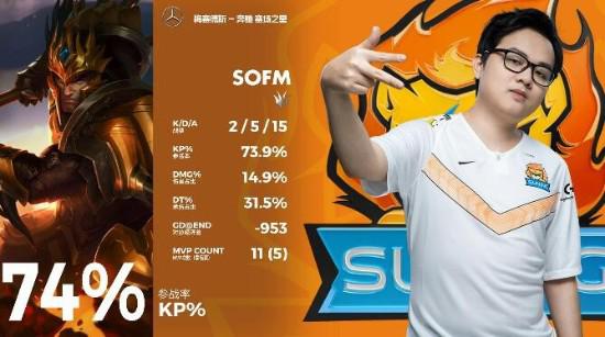 MVP:带领全场节奏,关键时刻大招框住多人的SOFM(皇子)