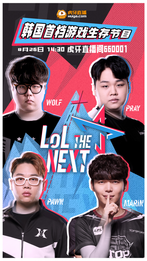8月26日14时30分,备受期待的韩国首档游戏生存节目LOL The next即将在虎牙直播重磅上线。这款由韩国英雄联盟冠军联赛独家推出的选秀节目自从推出以来便广受粉丝追捧,四十名参赛选手全部是由韩服钻一水平以上的玩家经过层层选拔脱颖而出。接下来他们还需要通过各种欢乐任务再次厮杀,成为四位明星导师Wolf&PawN队或Marin&PraY队的队员。最终代表节目最高水准的十名选手将在LCK比赛场馆中上演巅峰大战。