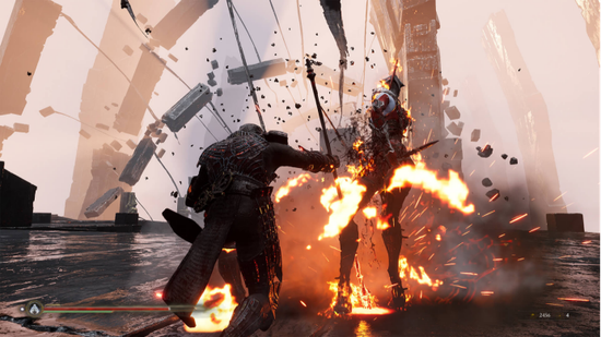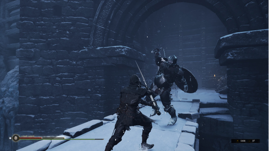 武器除了剑以外还有各种选择,不同的武器拥有不同的弱·强攻击动作和连招。玩家在战斗的时候可以在任意的姿势下使用无敌的“硬化”。通过格挡成功抵挡住攻击后,还可以发动强化反击攻击敌人。