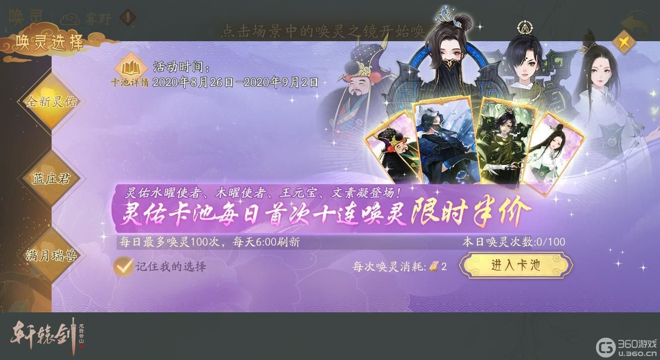 全新灵佑退场,《轩辕剑龙舞云山》灵佑卡池限时开放