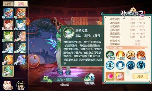 而龙马·鳞光则为辅助型神兽,为输出系大侠带来周全保障。其技能“玉鳞报意”可以治疗3到5个目标,对主目标造成1次额外治疗,并使主目标持续2回合受治疗提升50%。在鳞光死亡并被自身治疗后,不仅可以治疗5个目标,更能为主目标提供持续2回合的受治疗提升90%的增益属性。