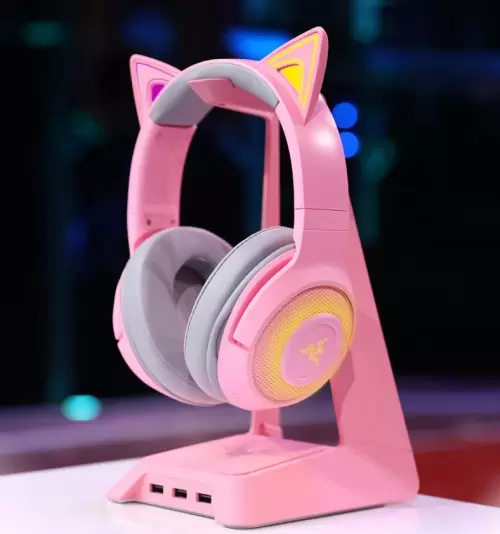 雷蛇丨街舞3限量款耳麦采用萌猫元素设计,经典的雷蛇粉晶配色搭配可爱猫耳设计让玩家尽情彰显可爱或高冷的猫咪风格;定制调教的40毫米驱动单元配合超低延迟体验,在打造清晰的沉浸式体验的同时,提供流畅的音效和竞技优势;蓝牙5.0无线连接确保可靠的无线体验,并带来最长约50小时的超长续航;搭载Razer Chroma RGB幻彩灯光技术,猫耳及耳罩可单独调光;波束成形麦克风能够确保更好的隔音效果和更清晰的语音体验。